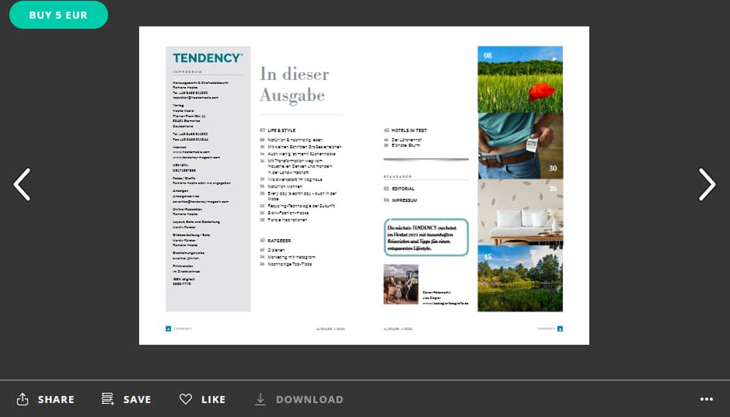 Wenn Sie keine eigene, aufwändige Publikation herstellen möchten, nutzen Sie unser Magazin TENDENCY mit Ihren Seiten für Ihre Kampagnen.